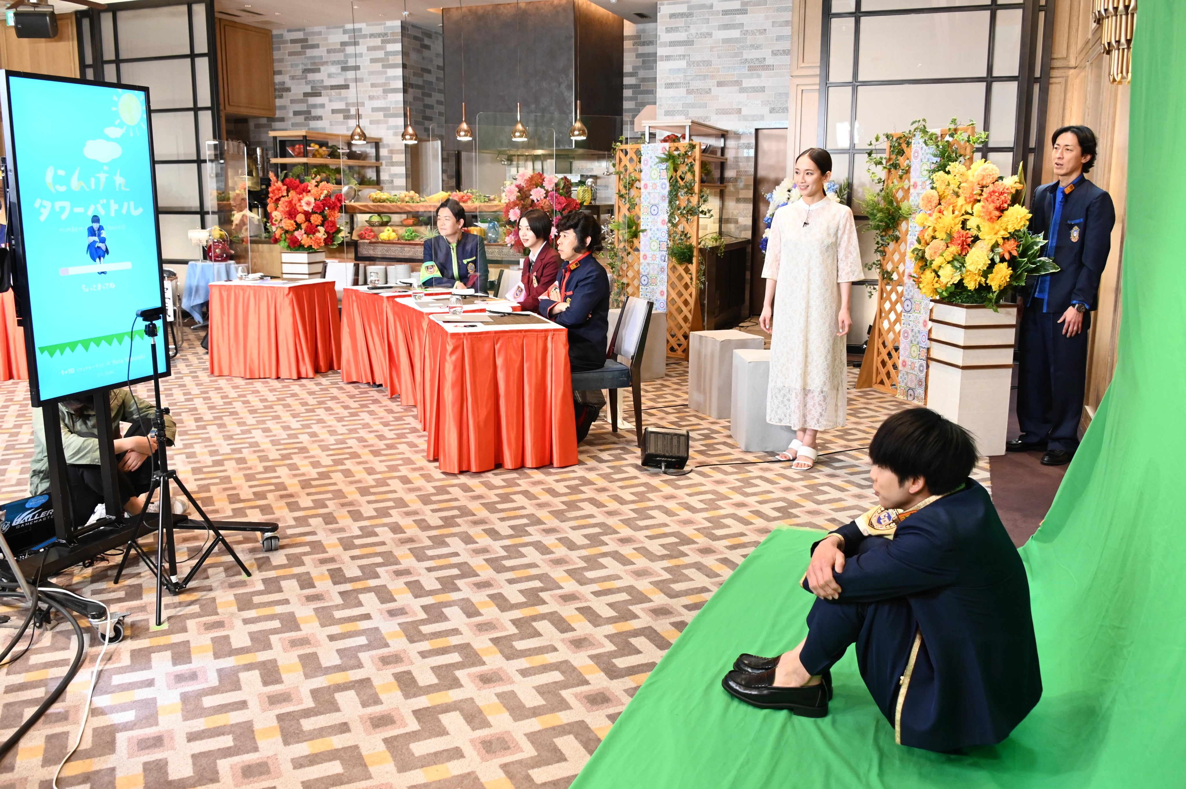 アミューズメント施設で人気だという「にんげんタワー」に挑戦し、クロマキーの前でポーズを決めて撮影すると、写真が別の画面で地面に落下します。テトリスの要領で人間のタワーを作り、崩れないように積み重ねるゲームです。