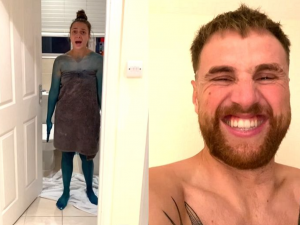 彼女の姿を確認したクリスティンは家が流されるほど爆笑しました。 実は今回のハプニングは彼氏クリスティンのいたずらでした。