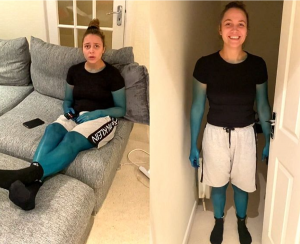 顔以外の全身が青く染まっていたからです。 ジャスミンの姿はまるでアニメ「わんぱくスマーフ」の中のスマーフのようでした。