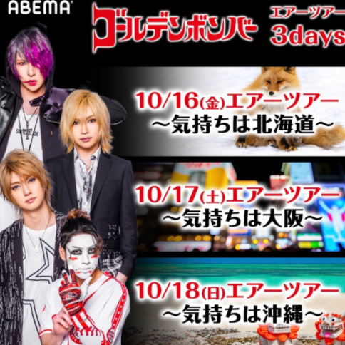 また、ゴールデンボンバーは10月16日から18日にかけて、『ゴールデンボンバー全国縦断無観客ライブ「エアーツアー」』3daysを開催。