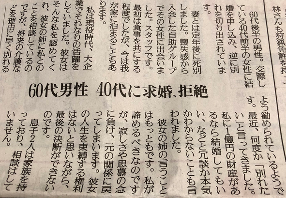 60代での再婚希望にどんな回答が送られたのでしょうか。