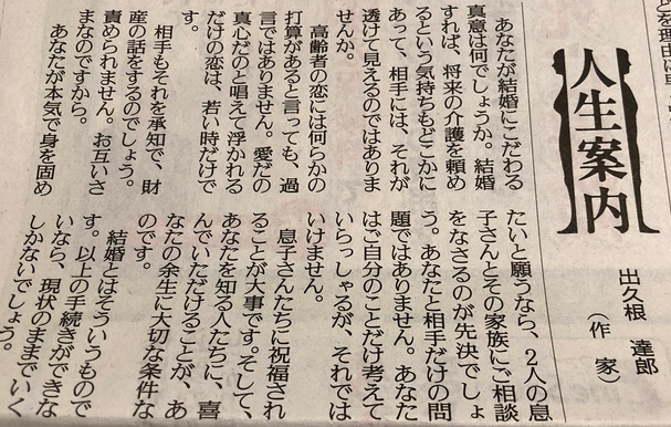このお悩みにアドバイザーとして回答するのは作家の出久根氏です。