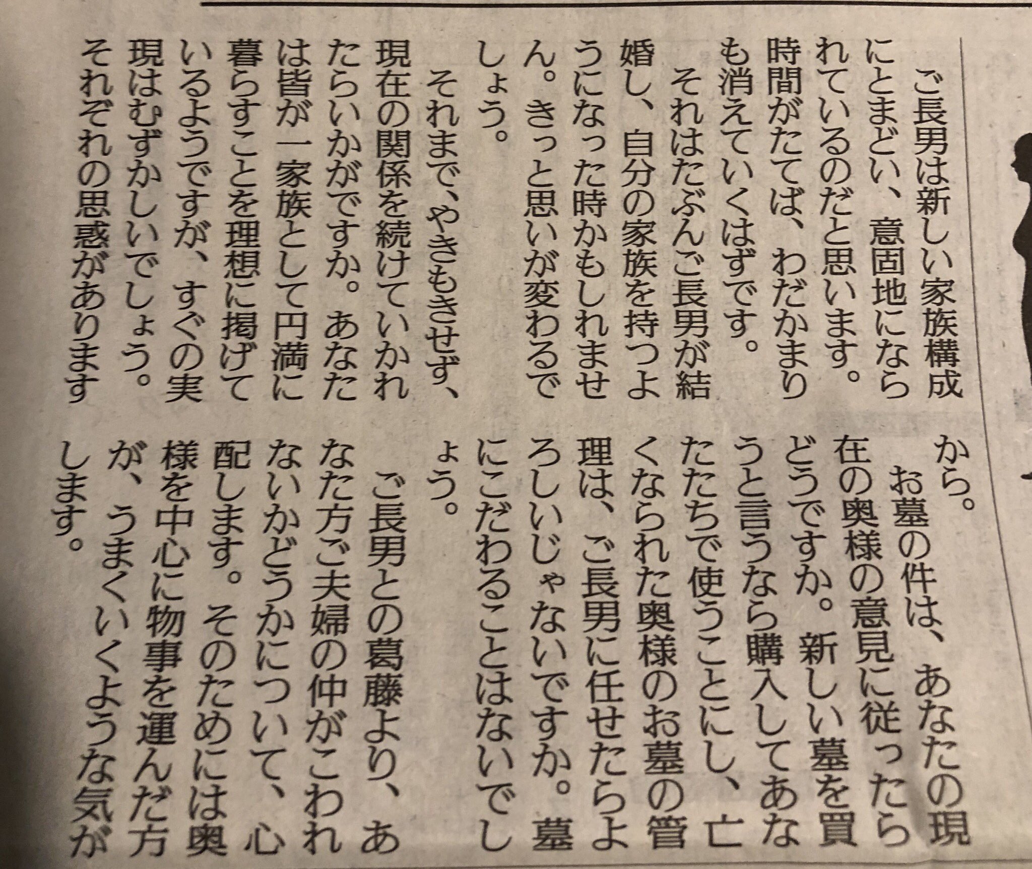 出久根氏も指摘しているように息子がいずれ家庭を持った時に