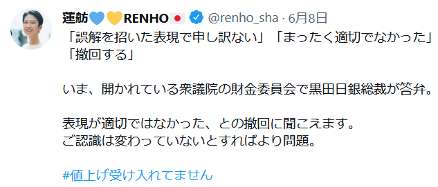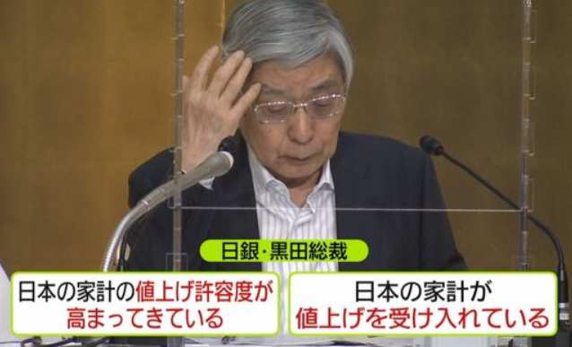 日銀の黒田東彦総裁が家計の値上げを受け入れたなどと発言を行ったことはご存知でしょうか。