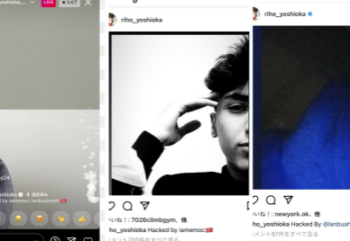 今回、吉岡さんのインスタライブ開始の通知で発覚した乗っ取り被害。ライブ配信を楽しみに多くのファンが吉岡さんのアカウントにアクセスしたのですが、午後9時過ぎに開始されると、謎の人物のダンスと音楽が流れアカウント名は〝Hacked by〟となっていたのです。