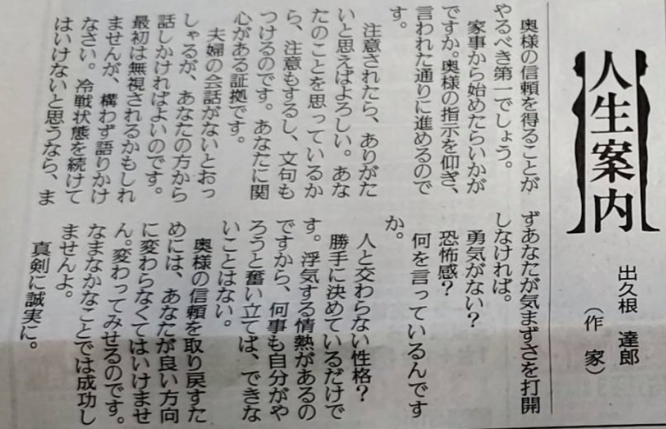 このお悩みにアドバイザーとして回答するのは作家の出久根氏です。