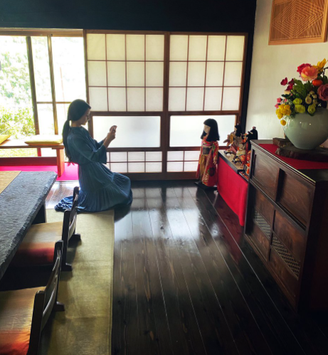 ダレノガレさんは「お茶の間。ここで家族でお茶飲んだりお菓子食べたり 実家で1番好きな場所」と、実家の“茶の間”の写真をアップ。存在感のある桜の盆栽やおしゃれな丸型の照明、日本人形などが配され、広々とした和テイストの空間が広がっています。