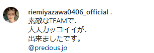 6日発売の『Precious』11月号を飾った宮沢さんは撮影カットをインスタグラムに投稿しました。