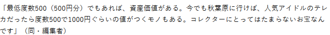 今話題になっているのが、某オークションサイトに出品されたテレホンカードです。