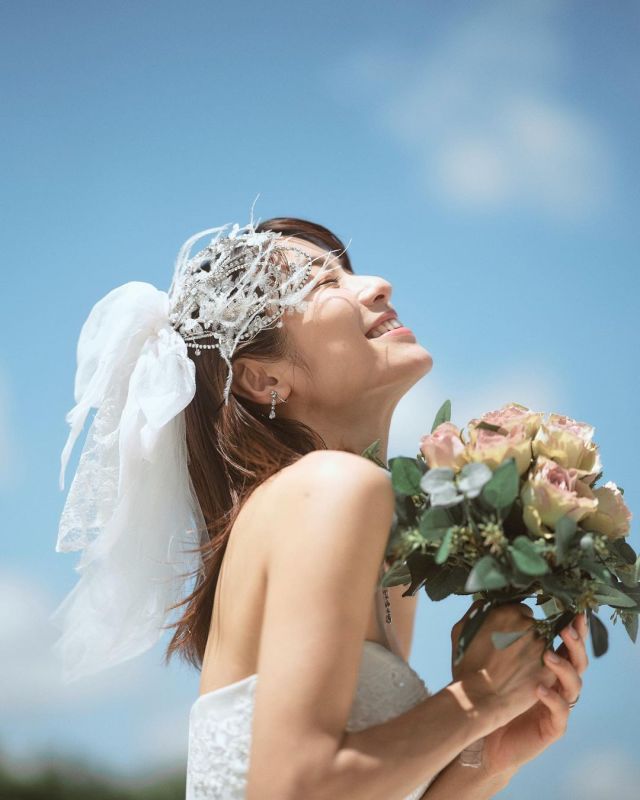 続けて、「そんな思いを形に残しておけたら素敵だなぁと思い、お世話になっている方々に協力して頂き、夫婦とティンクの記念のウェディングフォトを撮影してきました」と、ウエディングドレス姿で夫と並んだ幸せいっぱいの写真などを公開。「まだまだ未熟なところ沢山ありますが、日常を豊かに、そして良き未来のためにどんなに小さなことでも、何かきっかけになる発信をすることができたら嬉しいですね。さて 今日も明日も、笑ってこ!」とつづっていました。