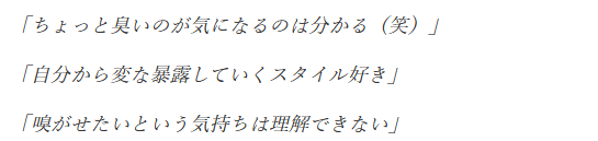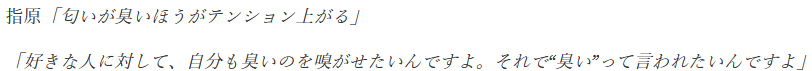 指原さんは人生で一度も香水にときめいたことがないそうで、香水の香りよりも人間の臭いが好きだと明かしました。どうやら香水や柔軟剤と言った人工的な香りが苦手なようです。人間の臭いが好きというだけあって、こんな行動も明かしました。