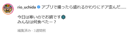 内田さんは写真の加工を隠すどころか、自ら綺麗に映るアプリで撮影したことを明かしていました!