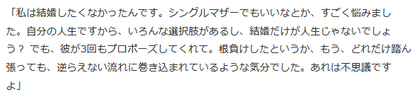 まさかのシングルマザーを覚悟で結婚に乗り気ではなかったことを明かしたのです。