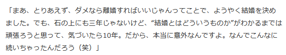 結婚生活10年を経た今、結婚当時の想いについて赤裸々に明かしました。