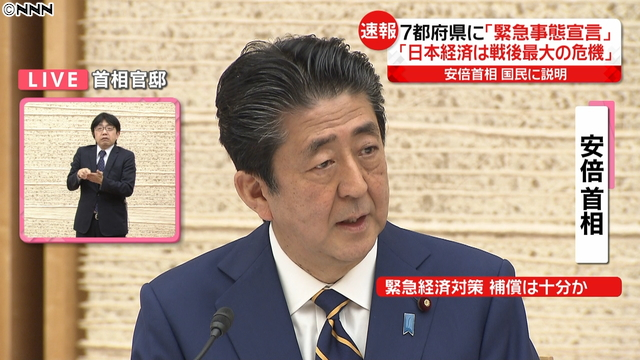 7日夕、安倍晋三首相(65)は 新型コロナウイルスの感染拡大に備える改正特別措置法(新型コロナ特措法)に基づく政府対策本部の会合を官邸で開き、緊急事態を宣言しました。対象地域は東京、神奈川、埼玉、千葉、大阪、兵庫、福岡の7都府県で、期間は5月6日まで。