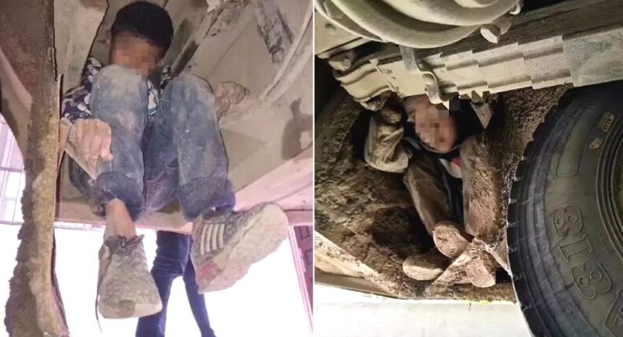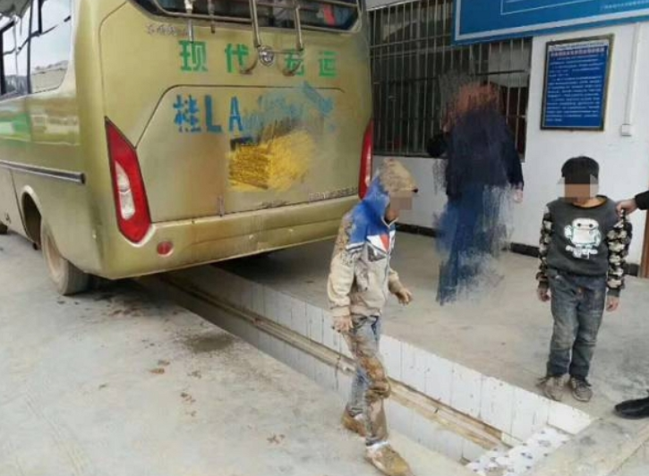広西省を出発して80kmを走った後、高速道路サービスエリアに停車したバス。 乗務員と警備員はいつものように車の点検を行いました。バスの床を点検したその時でした。警備員は子供たちが後輪の隅でうずくまっていてる姿を発見して大きな衝撃を受けたのでした。