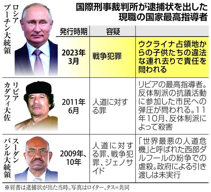ICC関係者によると、日本を含むICC加盟国は今後、プーチン氏の身柄を拘束する義務があるとのことで、実際には、ICCが逮捕状を強制的に執行することはできず、プーチン氏が身柄を拘束される可能性は低いとされます。一方、ロシアのウクライナ侵略に反対するICC加盟国をプーチン氏が訪れるのは難しくなり、プーチン氏の外遊先は制限されることになるとのことです。