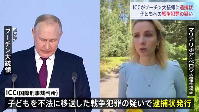 ICCの発表によると、プーチン氏とロシアの大統領全権代表のマリヤ・リボワベロワ氏は侵略を開始した昨年2月以降、ウクライナの占領地から子供を強制的にロシアに移送した行為に関与した疑いがあるとのこと。市民の不法移送はICCの設立を定めたローマ規程に抵触し、プーチン氏は「上位責任者」であると指摘しました。