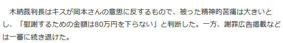 ふかわさんに対し、裁判長は80万円の賠償命令を下しました。判決理由については以下の通り。