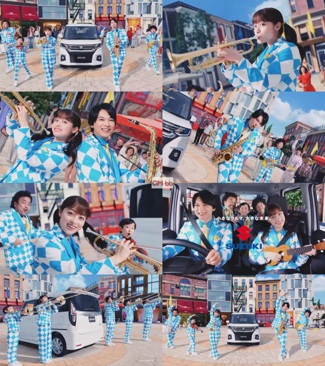 「ソリオ」のCMといえば、橋本、吉沢、パパイヤに、2人の子役を加えた「SOLIO5」が、軽快なメロディーに乗せてダンスや楽器を披露する内容でお馴染みで、白と青のチェックのセットアップに黄色いネクタイという派手な衣装に身を包み、車の機能や性能を紹介するCMです。