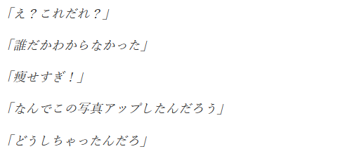 確かに指摘があるように痩せてしまった印象を受けますね。