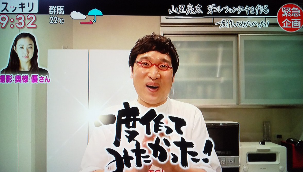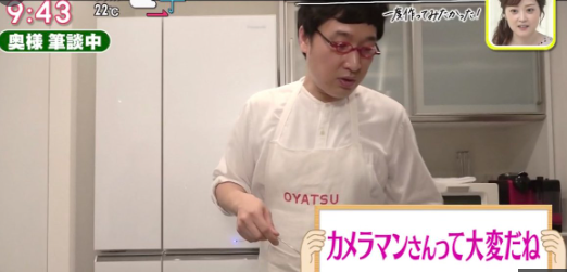 VTRでは、自宅のキッチンにエプロン姿で登場した山里さん。ケーキ作りを見守るカメラマンは、なんと妻の蒼井優さん!スタジオでは夫婦2人によるVTRに驚きの声が上がりました。