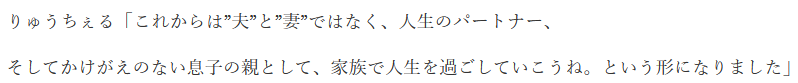 離婚するわけではなく今後も生活を共にするパートナーという関係を築いていくそうですよ。