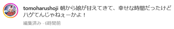 庄司さんはインスタグラムを更新すると朝から娘さんが甘えてきたことを明かし