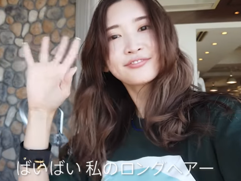 美容室に到着し、担当の美容師さんと髪型を決定したあとカメラ目線で「ばいばい私のロングヘアー」と語りました。ロングヘアにハサミが入る瞬間も写っていて一気にバッサリとカットされていました。