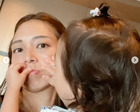 先月、SNS上で2歳の長女に顔を好き放題いじられる様子を公開しました。