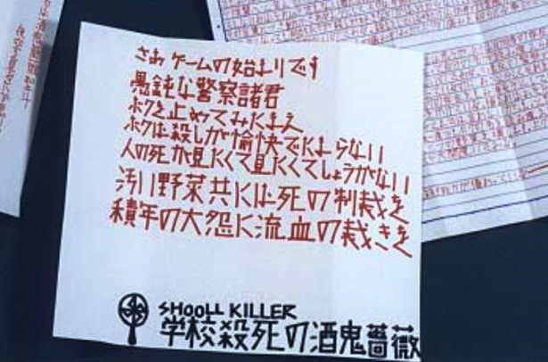 とても衝撃的な事件で、被害者の頭部と声明文が学校の正門の前に置かれていたり、マスコミに対して挑戦状を送りつけたりと挑発していましたが、犯人は普通の中学生だったため、警察の捜査はとても慎重に行われました。