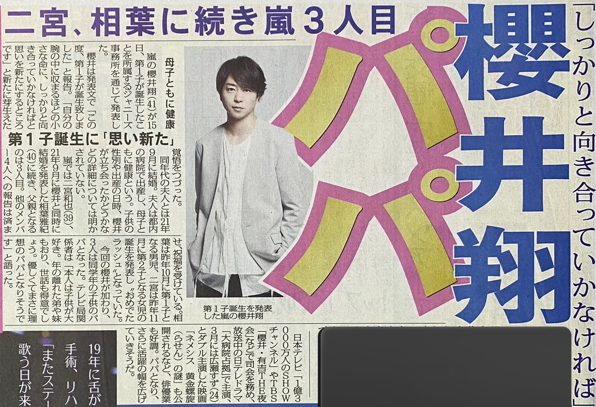 嵐の櫻井翔(41歳)が15日、第1子が誕生したことを所属するジャニーズ事務所を通じて発表したことで、祝福の声が殺到しています。