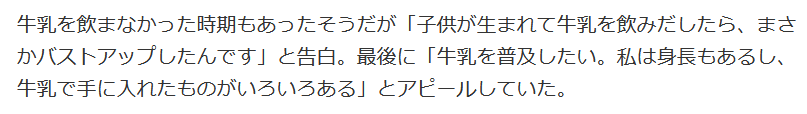 なんと牛乳によるバ〇トアップ効果だということを明かしました。嘘のような本当の話ですね。