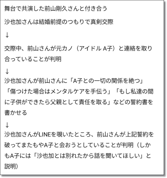 ネット上で拡散されているLINEのスクリーンショットについては、「小島本人と前山氏のものではございます」と認めたものの「誤解を招く表現のところのみが抜粋されており、2人の関係は完全に解消されておりました。小島自身と致しましては、関係を解消した後、前山氏から連絡がきた際は、関係解消しているので当たり障りのないやり取りを意識していたとのことです」 と訴えています。