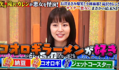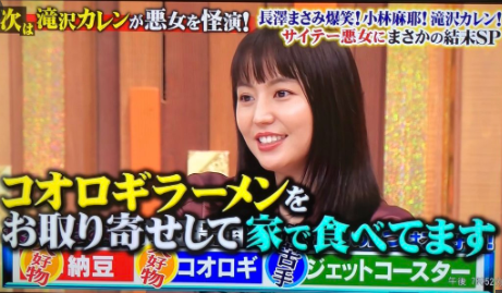 長澤さんはそれぞれの苦手な理由を説明していき、まず納豆は「ネバネバしたところがちょっと苦手」、コオロギは「見た目が苦手で黒光ってる」、ジェットコースターは「フワっとくるのが苦手」と答えていました。
