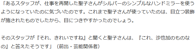 今は亡き愛娘のハンドミラーを手に仕事に取り組んでいたんですね。天国の沙也加さんもきっと喜んでいるのではないでしょうか。