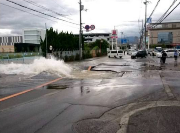 枚方大橋の給水管破裂!!( ; ロ)゚ ゚#地震#枚方大橋 pic.twitter.com/IiTRqNS0lm