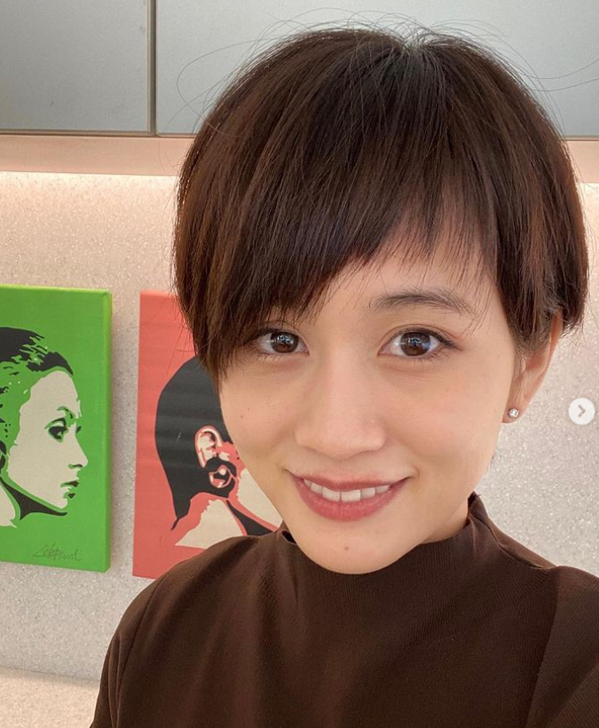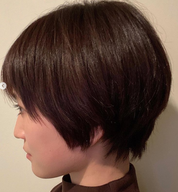 最近ショートヘアにした前田さんですが、さらに短くし前髪はアシンメトリーでおしゃれに。ヘアカラーは落ち着いた色で大人の雰囲気が漂っています。