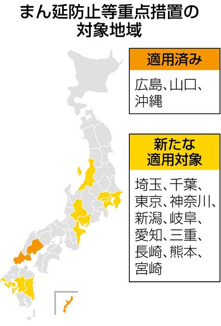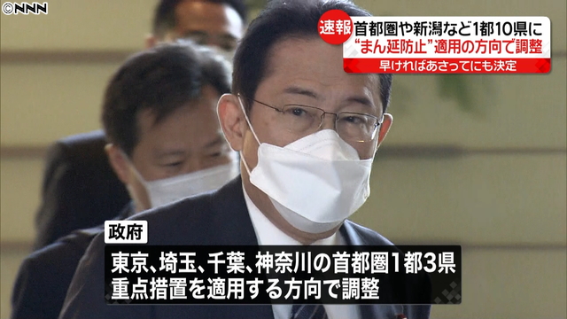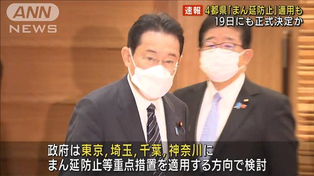 今月18日の関係閣僚会議で協議、19日の対策本部で決定する方向としており、適用期間は3週間以上とする案が出ているようです。