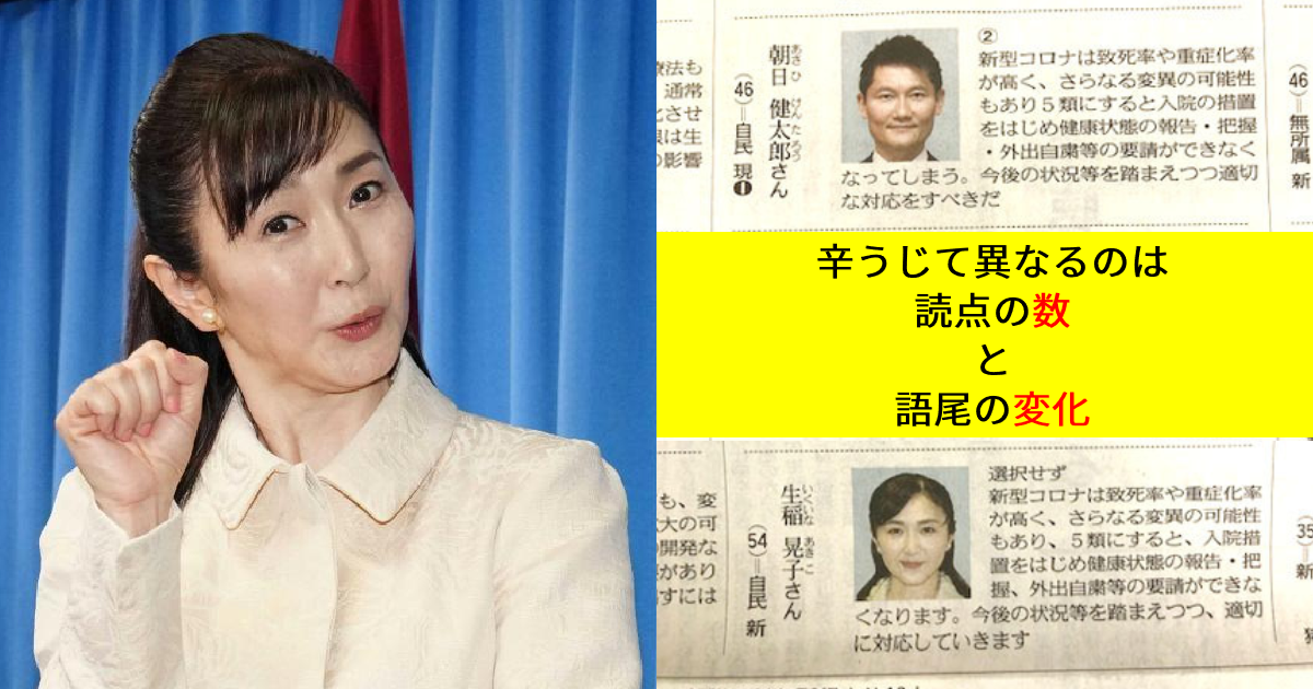 ・東京新聞の記述は同じ自民党の朝日健太郎氏と酷似 ※詳細は下記リンク
