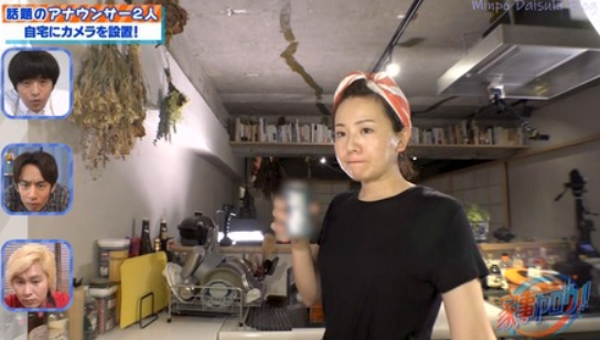 VTRに登場した大橋アナはすっぴんに黒のTシャツ姿。台所の奥にカメラやライトなど撮影機材を置き、大橋アナの姿を正面から映していました。