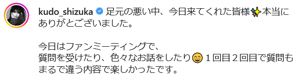 26日にファンミーティングが行われたそうで翌日のインスタグラムでは