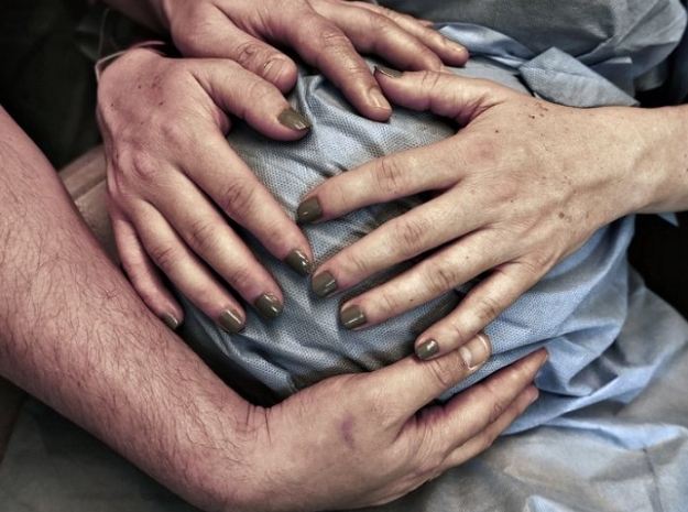 陣痛が来て間もなく、「夫は一緒に分娩室に入るから!」と妻に伝えたといいます。しかし、妻はその夫の意見に最初は反対していたといいます。もしかすると手術中に大量出血することもあり、めったに見ることのない状況に夫が気を失ってしまって、トラウマにならないか心配したからだったそうです。