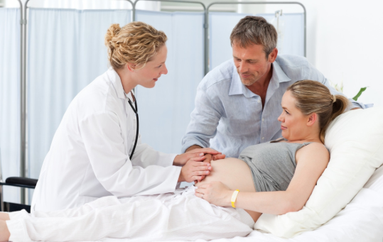 陣痛の痛みで額が汗だくになっている妻は、慌てて産婦人科を訪れました。陣痛に頑張って耐えようとしている妻を横目にした夫は、勇気を出して立ち会い出産を希望し、ともに分娩室に入ることを決意しました。