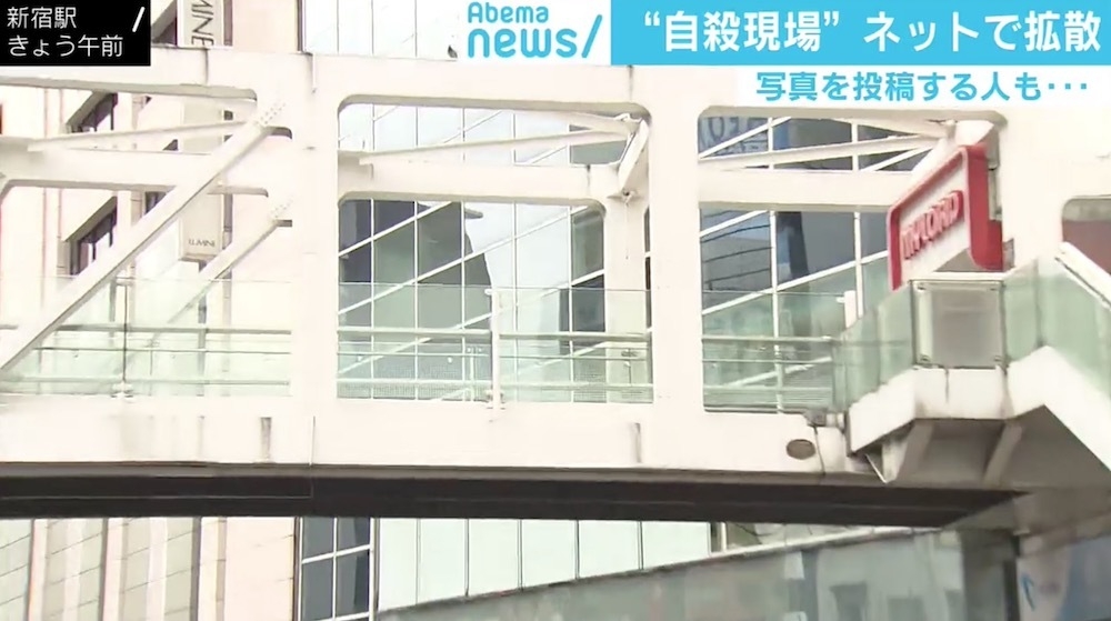 今月6日、警視庁新宿署によると、白昼堂々新宿駅の南口にある歩道橋で、マフラーで首をつり心肺停止状態になった30代の男性を発見したと発表しました。男性は通報の直後に飛び降りたとみられ、搬送先の病院で死亡が確認されたとされていましたが、実際は未遂ですみ、一命をとりとめたそうです。