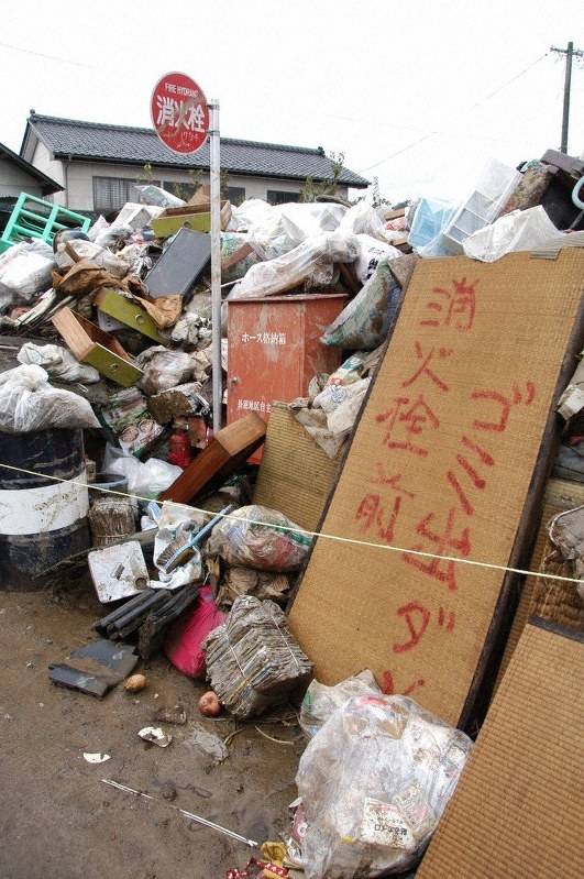 さらに、中には近場の公園や畑にごみを捨てている人もいるそうで、ごみが防火水槽のある敷地に積まれ、火災の2次災害の危険も出てきています。堤防が決壊した付近のエリアでは、たんすや布団、冷蔵庫などが畑などに無造作に高さ2メートル以上積まれている所が点在しているとか・・・!