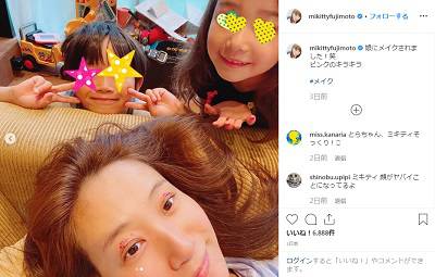 そんな藤本さんがこの日に投稿したのは、「娘にメイクされました!笑ピンクのキラキラ」とつづって書かれた、子供たちと写っている写真です。藤本さんは、コメントにある通り、目の上にはピンクのラメのようなものが付いていましたが、あることにそれ以上に注目が集まってしまいました。