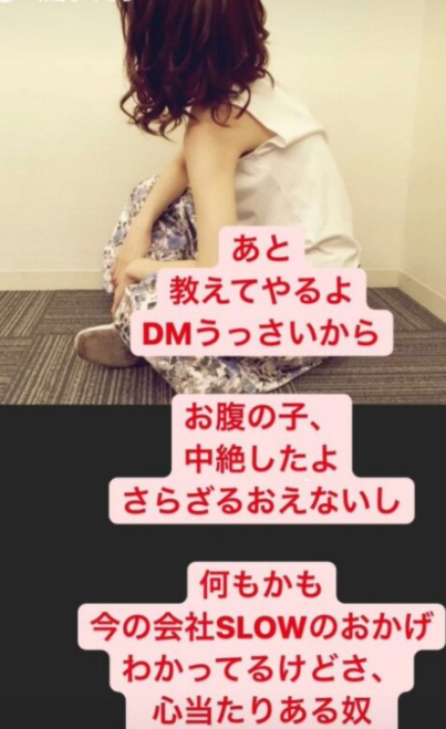そんななか、おそらくDMで妊娠について聞かれたことに対する〝返事〟だと思われますが、坂口さんは「あと教えてやるよ DMうっさいから お腹の子、中絶したよ さらざるおえないし」とインスタのストーリーに投稿。