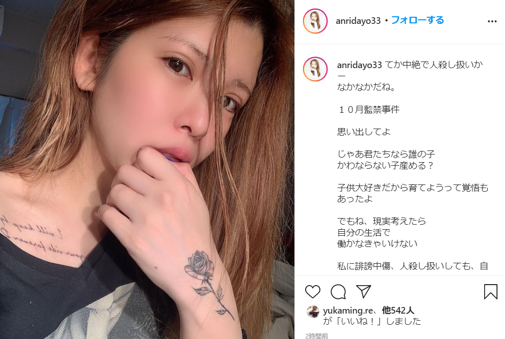 また、妊娠のきっかけとなった性暴力を受けていた時の壮絶なエピソードをつづり、「こんなゲスい事書きたくないし言いたくないけど私にそんだけ言うなら同じこと同じ思いしてみな 並大抵な気持ちでいれないよ」と締めています。