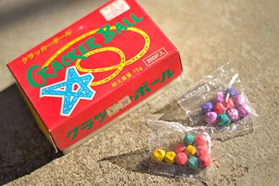 このかんしゃく玉、現在ではほとんど出回っていない状態。「クラッカーボール」という商品名で、玉に地面に投げつけて遊ぶ子どものイラストがプリントされているのが印象的なこの商品。しかし、いずれも過去に販売されていた品で、製造会社がどこかは判然としていません。